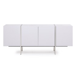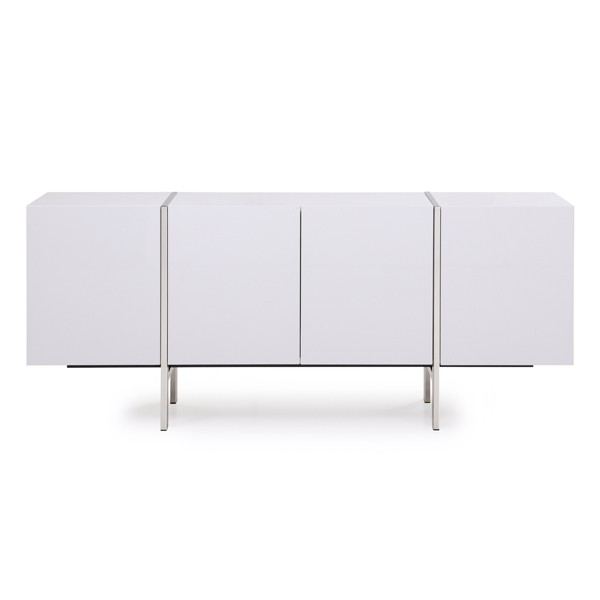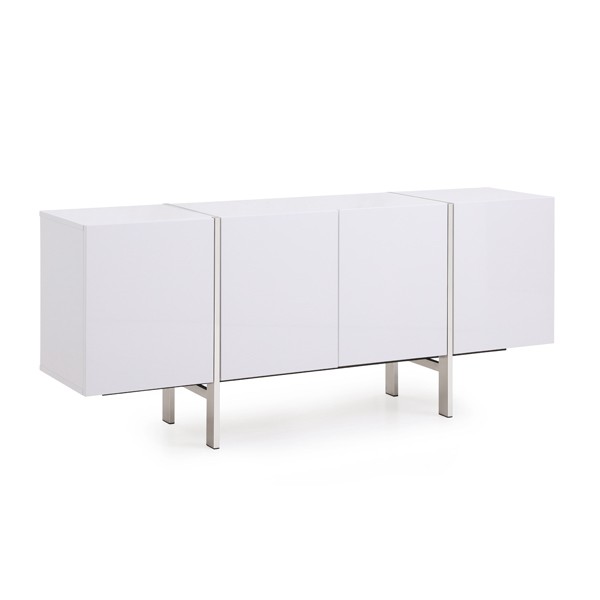 Buffet. White high gloss cabinet, Brushed stainless steel legs and accent. Melamine finish drawers - MOQ: 6pcs