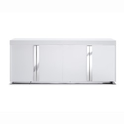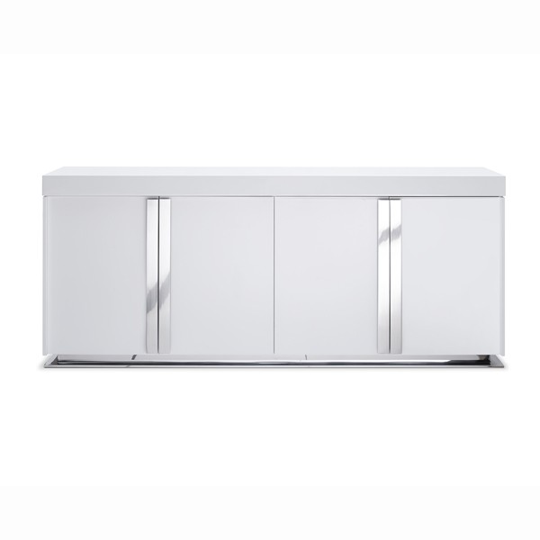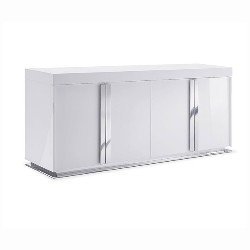 Buffet 4 doors. White gloss cabinet and doors, polished stainless steel door handles detailing - MOQ: 6pcs