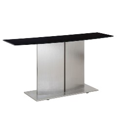 Console Table. 12mm black tempered glass with boat shaped edge, brushed SS legs - MOQ: 5pcs