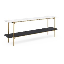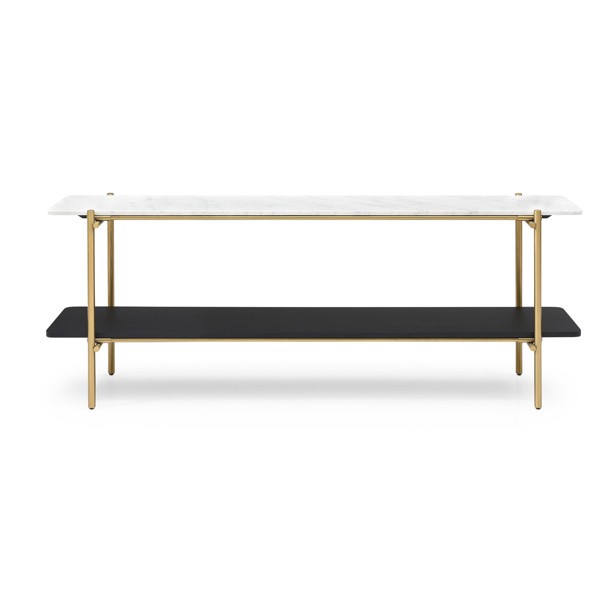 Console table - Matt Bianco Carrara marble top, Black oak bottom shelf, brass legs and frame, MOQ 6